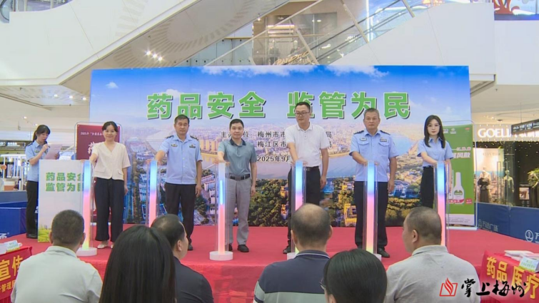 9月5日,由梅州市市场监督管理局与梅江区市场监督管理局共同主办的2025年药品安全宣传周启动仪式在万达广场举行。市、区市场监督管理局相关负责人,梅州市公安局梅江分局相关负责人以及药品生产经营企业代表参加活动。